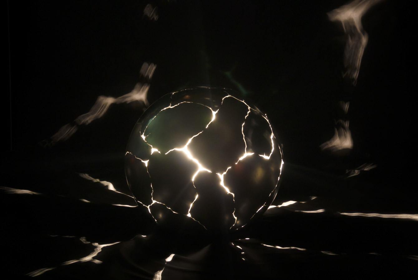 Questo globo scolpito in alluminio lucido e satinato dà forma a una visione mistica della Terra, colma di luce interiore. Simboleggia come, anche mentre subisce trasformazioni distruttive, nulla vada mai davvero perduto e come Madre Terra continui a nutrire l’umanità, a condizione che riconosciamo di non esserne i padroni, ma semplici ospiti, chiamati a proteggerla con cura.